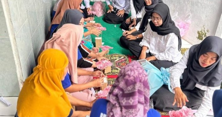 Pekalongan - Para peserta Maganghub Rumah Tahanan Negara Kelas IIA Pekalongan memberikan pelatihan pembuatan buket bunga kepada Warga Binaan Pemasyarakatan (WBP) Perempuan. Kegiatan berlangsung di area blok perempuan pada Rabu, 10 Desember 2025.